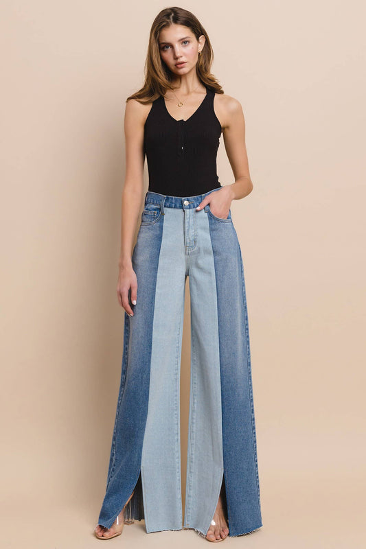 COLORBLOCK JEANS WITH SPLIT SEAM