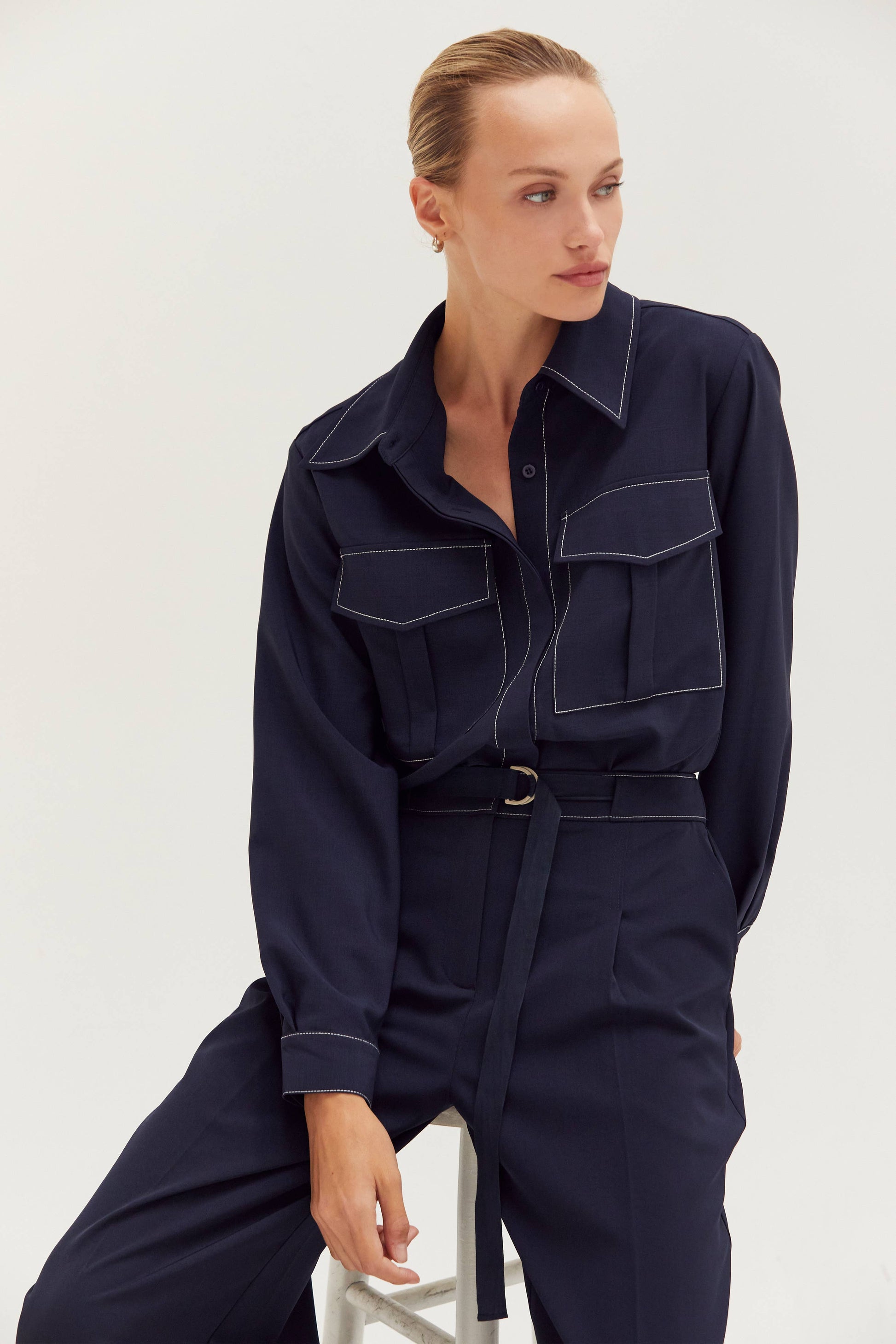 Kelly Contrast Stitch Button Down Shirt